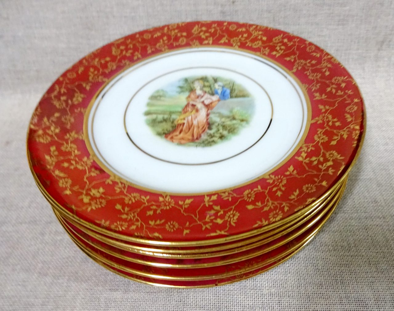 Σετ 6 τεμάχια πορσελάνινα πιάτα γλυκού, vintage, διάμετρος 15εκ.