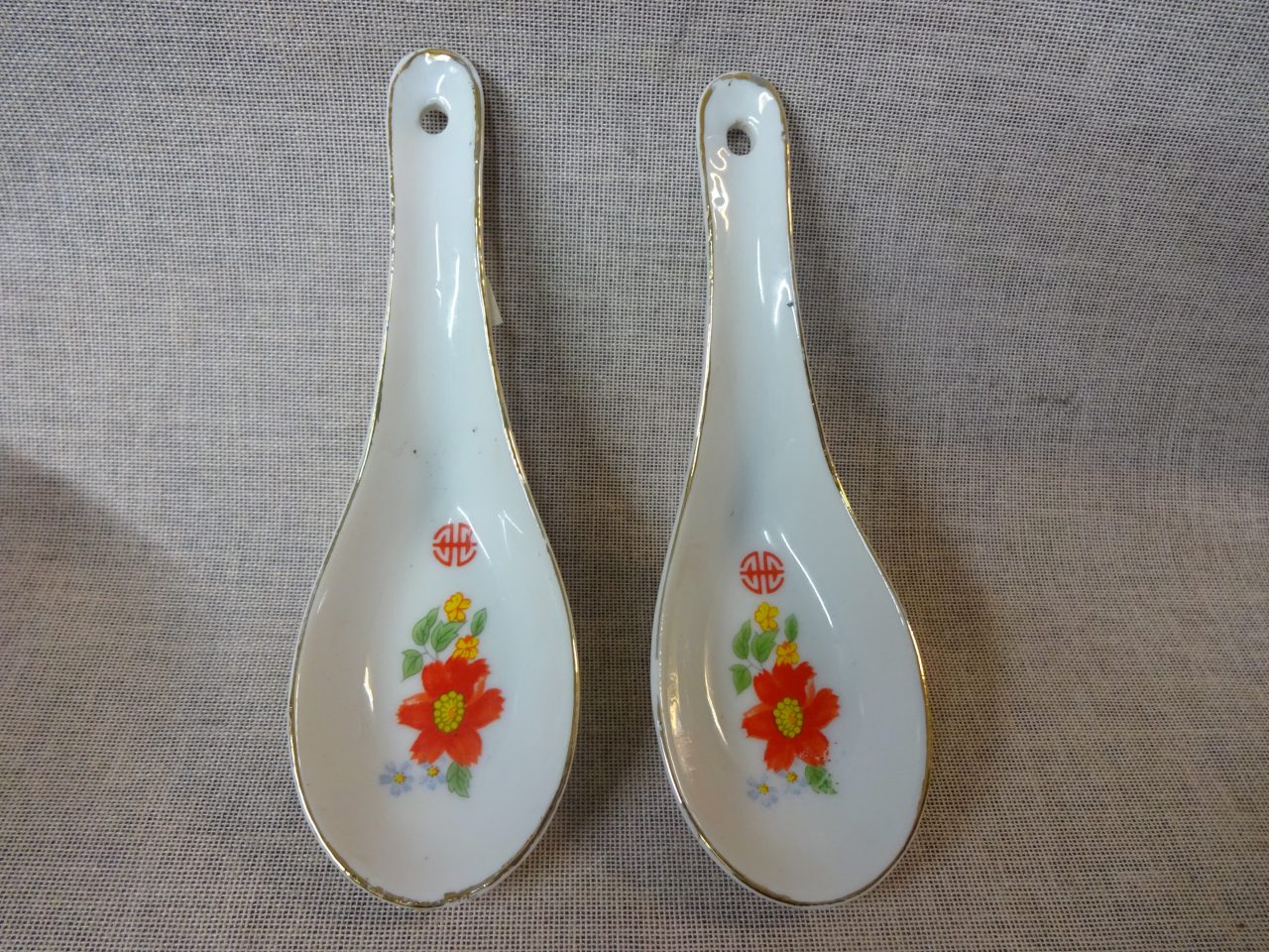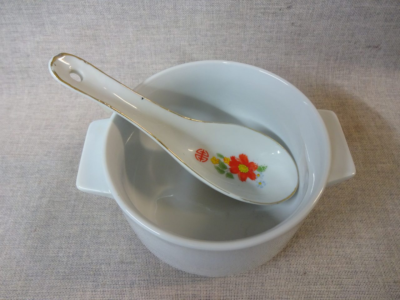Πορσελάνινη ζαχαριέρα με πορσελάνινα κουτάλια ζωγραφισμένα στο χέρι, (διάμετρος 10.50εκ χ 6εκ, κουτάλια ύψος 14.5εκ χ 4.5διάμετρος.